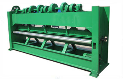 針刺機(jī)利用具有三角形或其他形狀的截面,且在棱邊上帶有刺鉤的刺針對(duì)纖維網(wǎng)反復(fù)進(jìn)行穿刺。由交叉成網(wǎng)或氣流成網(wǎng)機(jī)下機(jī)的纖網(wǎng),在喂入針刺機(jī)時(shí)十分蓬松,只是由纖維與纖維之間的抱合力而產(chǎn)生一定的強(qiáng)力,但強(qiáng)力很差,當(dāng)多枚刺針刺入纖網(wǎng)時(shí),刺針上的刺鉤就會(huì)帶動(dòng)纖網(wǎng)表面及次表面的纖維,由纖網(wǎng)的平面方向向纖網(wǎng)的垂直方向運(yùn)動(dòng),使纖維產(chǎn)生上下移位,而產(chǎn)生上下移位的纖維對(duì)纖網(wǎng)就產(chǎn)生一定擠壓,使纖網(wǎng)中纖維靠攏而被壓縮。